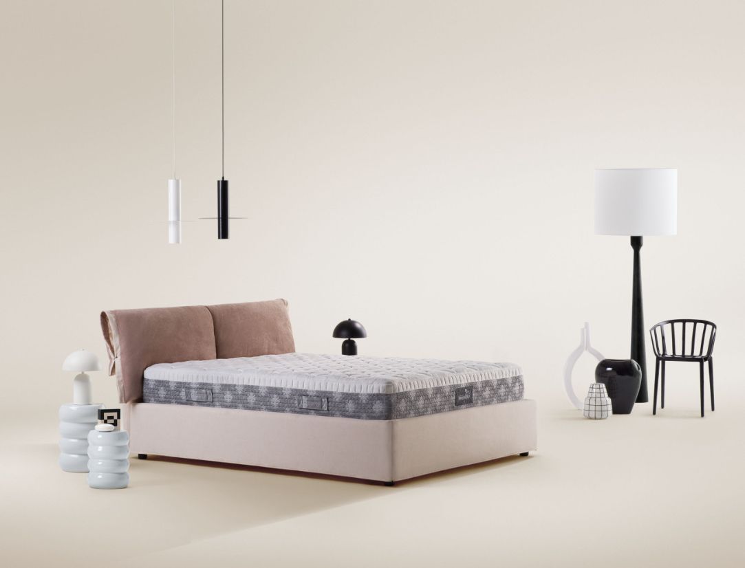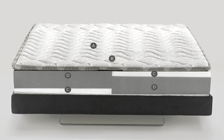 Различные комбинации слоев Memoform и Eliosoft гарантируют разные уровни комфорта , которые можно легко комбинировать, сняв чехол и выбрав предпочтительное решение. Плотный, анатомический Memoform избегает точек давления и стимулирует кровообращение. Чехол из мягкой вискозы и регулирующего температуру Outlast ®, который поглощает избыточное тепло и отдает его при необходимости, получил сертификацию GRS (Global Recycle Standard). Комфорт средней мягкости/средней жесткости.