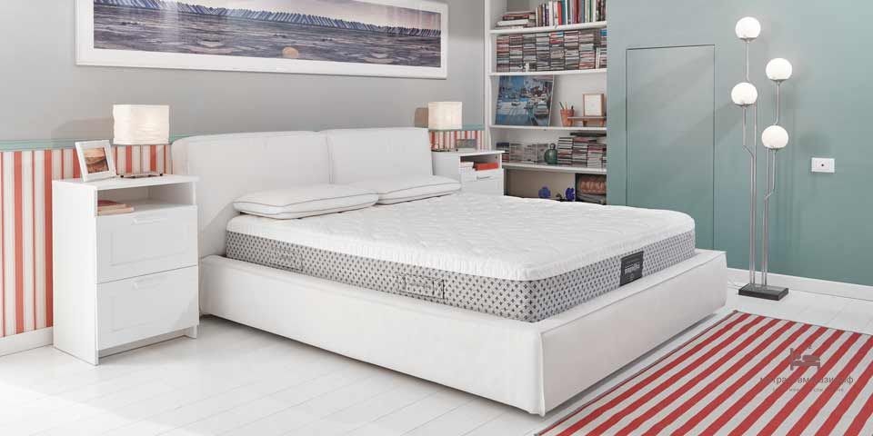 Различные комбинации слоев Memoform и Eliosoft гарантируют разные уровни комфорта , которые можно легко комбинировать, сняв чехол и выбрав предпочтительное решение. Плотный, анатомический Memoform избегает точек давления и стимулирует кровообращение. Чехол из мягкой вискозы и регулирующего температуру Outlast ®, который поглощает избыточное тепло и отдает его при необходимости, получил сертификацию GRS (Global Recycle Standard). Комфорт средней мягкости/средней жесткости.