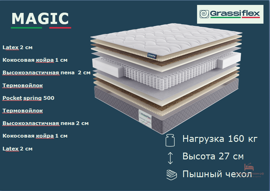 Матрас MAGIC Grassiflex (высокий матрас с натуральным латексом)