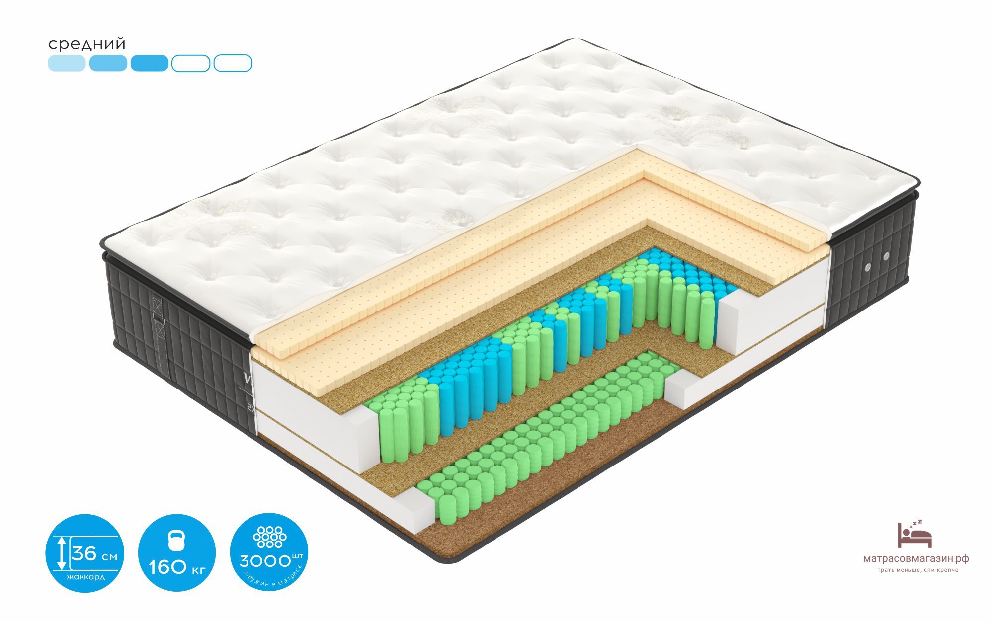 - Количество пружин в двуспальном матрасе (шт.) 3000
