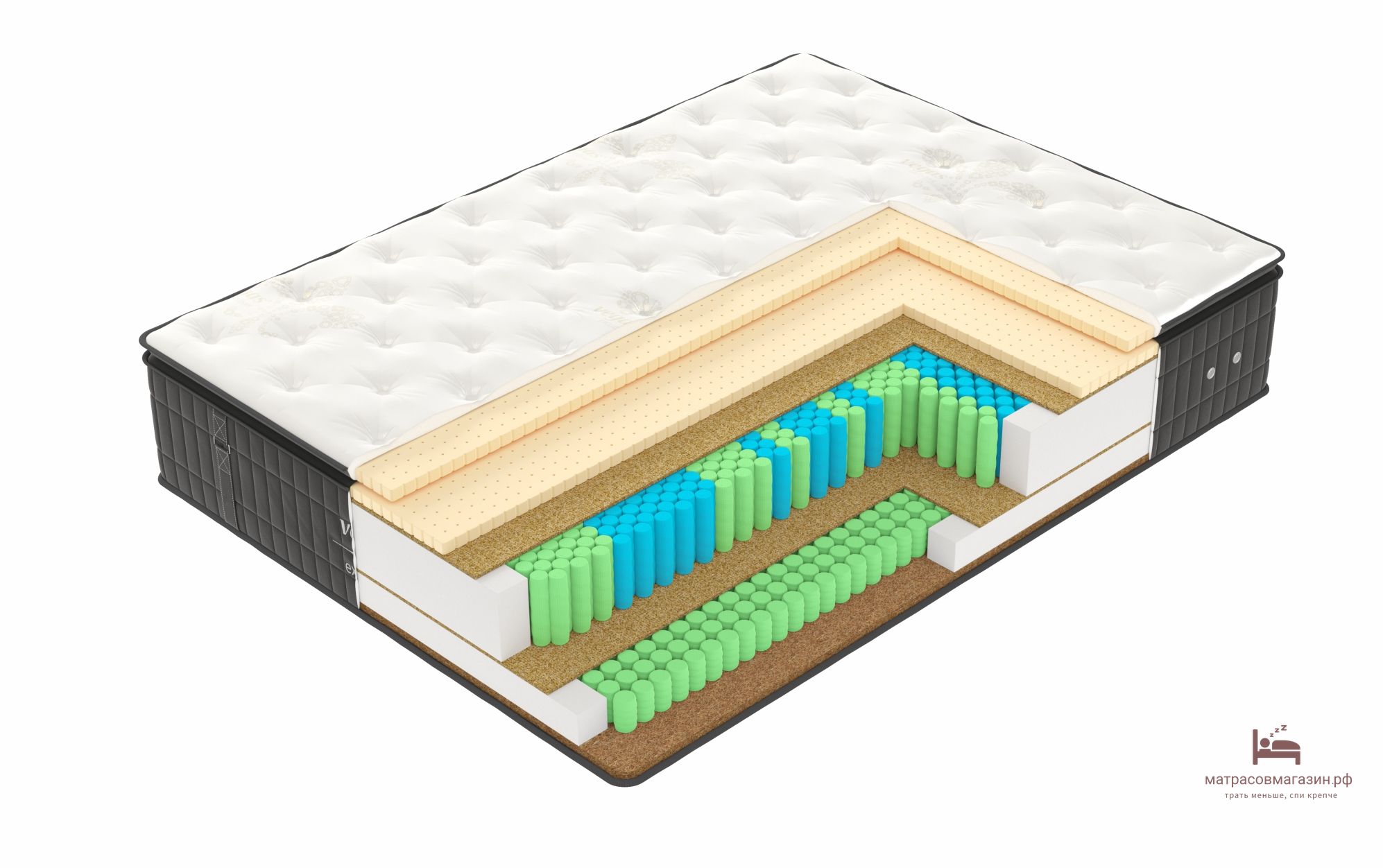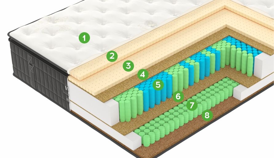 порядке и сбалансированное распределение зон по длине матраса. Гарантирует исключительный отдых даже при максимально