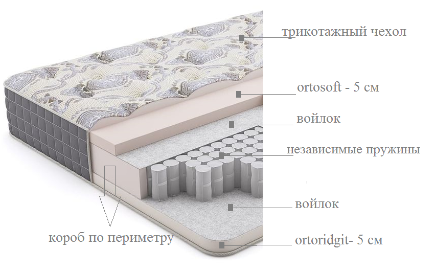 - ORTOSOFT -МЯГКАЯ ЛАТЕКСИРОВАННАЯ ПЕНА. ПРЕКРАСНО ВЕНТИЛИРУЕТСЯ, ДОЛГОВЕЧНА И ИЗНОСОУСТОЙЧИВА. ТОЧНО ПОДСТРАИВАЕТСЯ ПОД ИЗГИБЫ ТЕЛА, ОБЕСПЕЧ ИВАЕТ ОЩУЩЕНИЕ МАКСИМАЛЬНОГО КОМФОРТА; h 5 СМ;